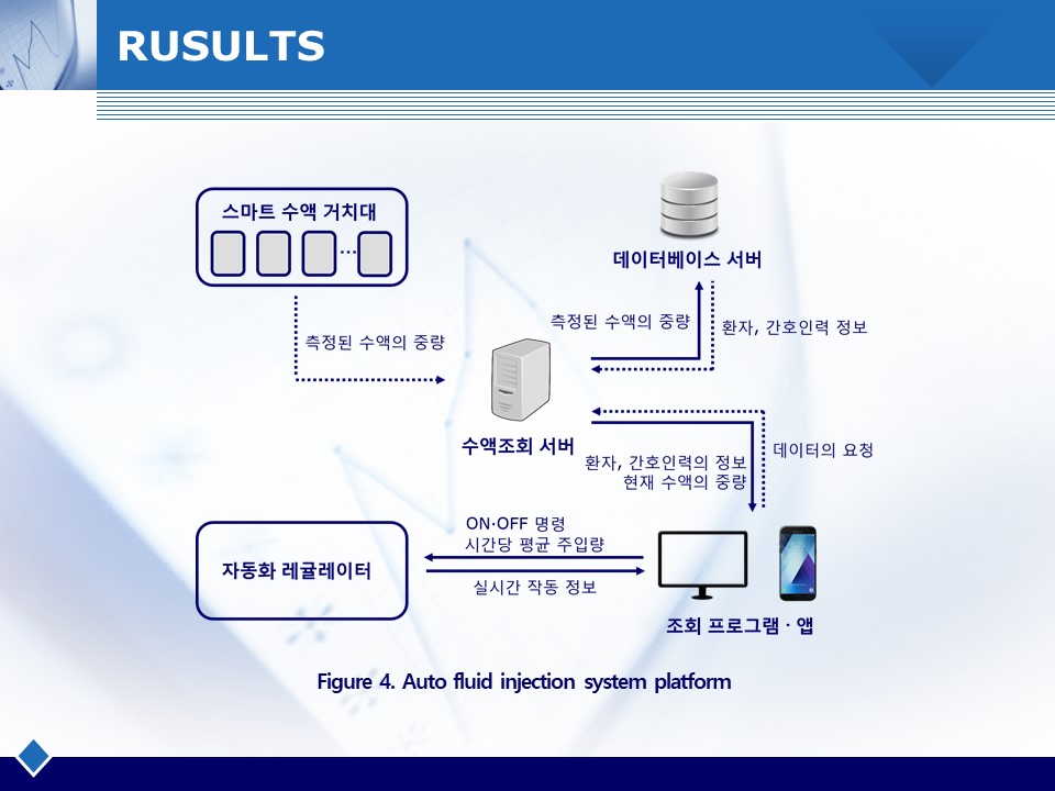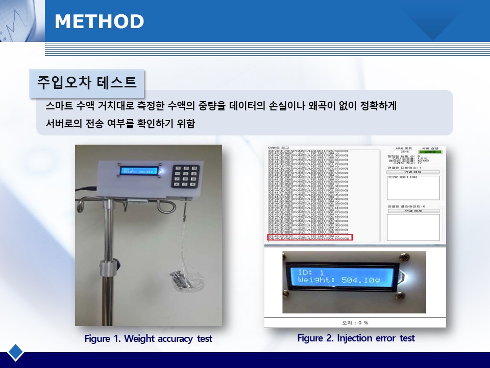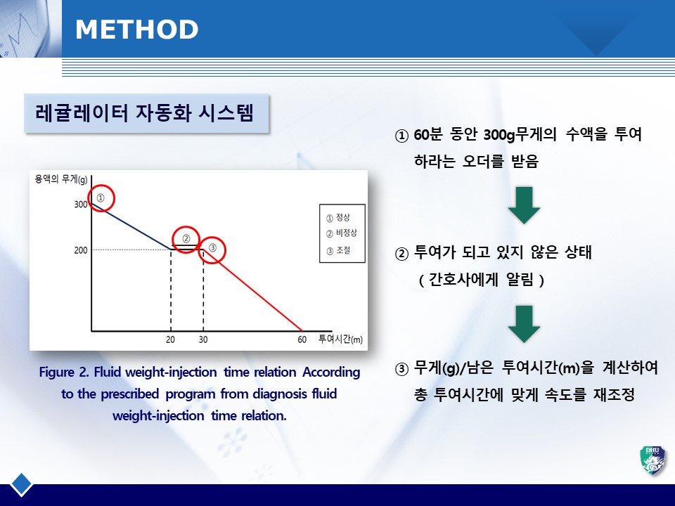 수액투여 시 의료사고를 방지하고 정확한 양의 수액을 투여하기 위한 자동화 및 모니터링 시스템을 개발함. 스마트 수액 거치대를 통해 실시간 수액의 중량변화를 모니터링하고, 오토-레귤레이터가 자동으로 유량을 조절함. 수액 거치대와 오토-레귤레이터를 설계 및 제작하고 주입오차 테스트를 통해 정밀도를 측정함.
