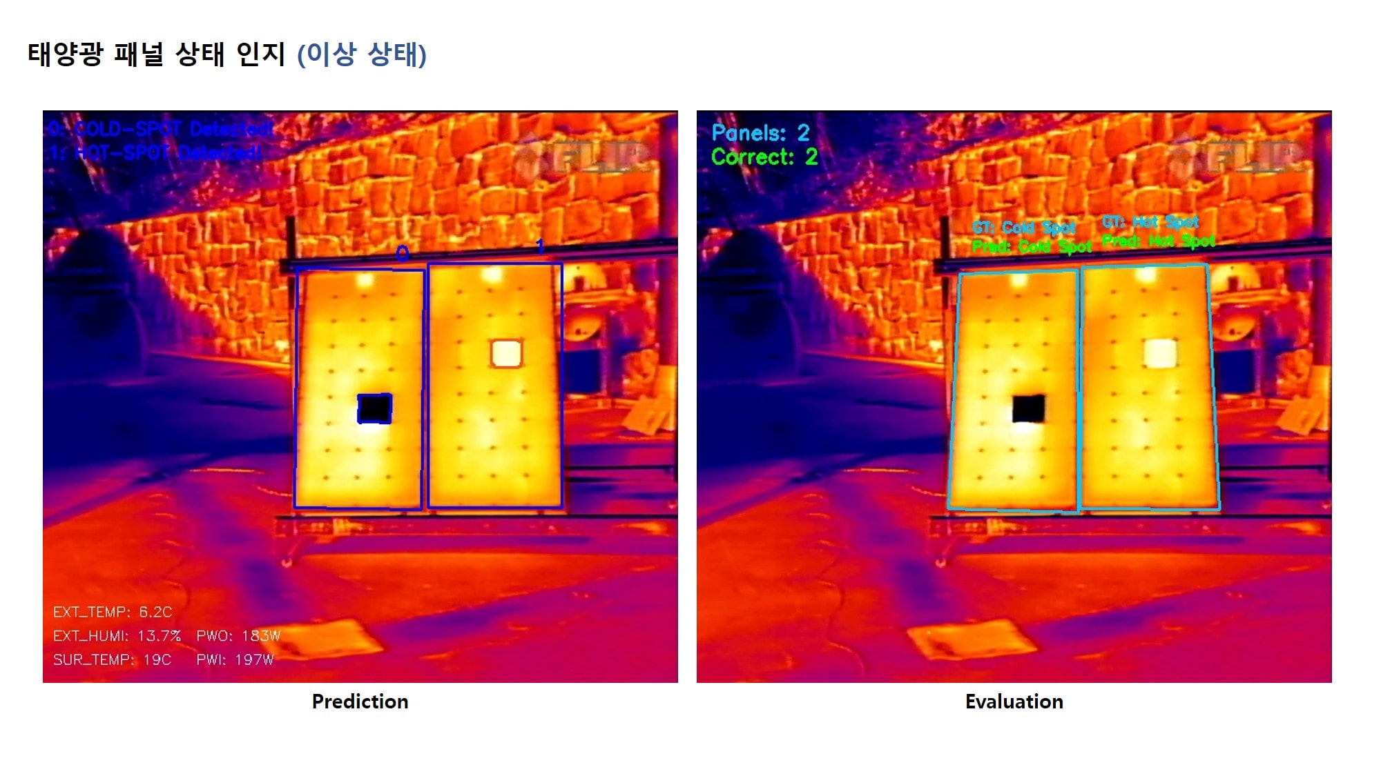 열화상 영상에서 실시간으로 태양광 패널을 탐지하고 문제가 발생한 패널을 인식함. 알고리즘은 영상을 입력받아 태양광 패널을 탐지하여 좌표를 저장하고, 탐지된 패널에서 핫-스팟 또는 콜드-스팟을 검출하여 패널의 이상 유무를 판단함.
